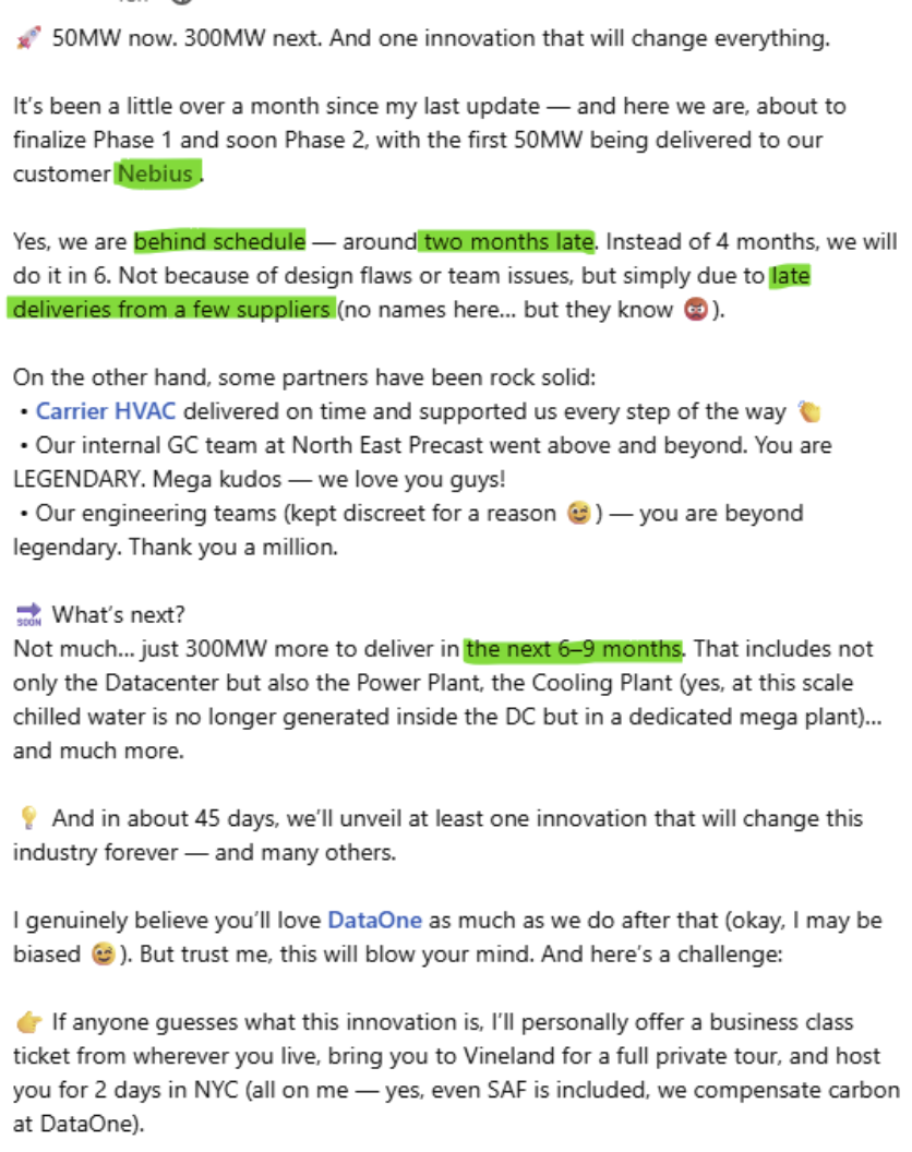 The Microsoft deal moves Nebius’ main business to being a data center provider. It’s literally a different company now than it was a month ago. Microsoft is where the majority of their revenue will be coming from for the next few years.