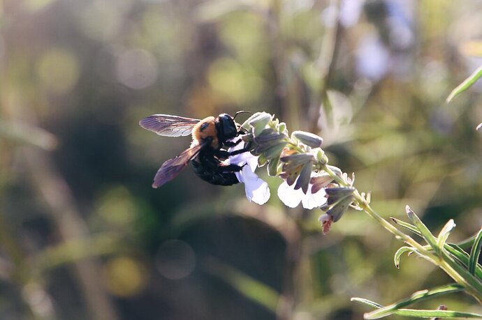 Native bees are actually better pollinators than the European honey bee (Apis melliferus). Bumblebees are able to “buzz pollinate” by vibrating their wing muscles without flapping their wings. But honey bees are commercially valuable because they live in large hives which can be schlepped around the country as various fruits and veggies bloom.