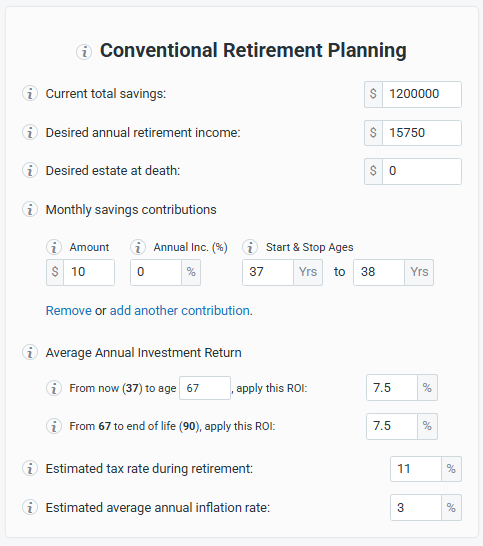 While this scenario does not imply anyone falling short of goals, the implied risk is that more and more income must come from the taxable sources, which magnifies tax regime change risk and health care expense inflation risk as well (by extension of subsidies no longer applying to annual income stream declarations).